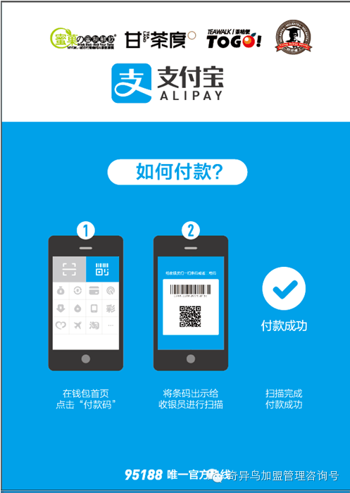 奇异鸟与支付宝的首次合作——旗下四品牌蜜菓、甘茶度、奶茶博士、茶桔便,奶茶支付宝首单五折优惠活动,更是让广大粉丝们大呼过瘾,对下快速的支付宝活动表示满满期待~